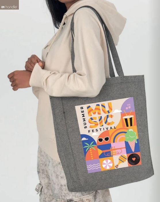 Materiali: cotone, juta, bambu, sughero, R-pet, TNT, poliestere, polipropilene, carta
